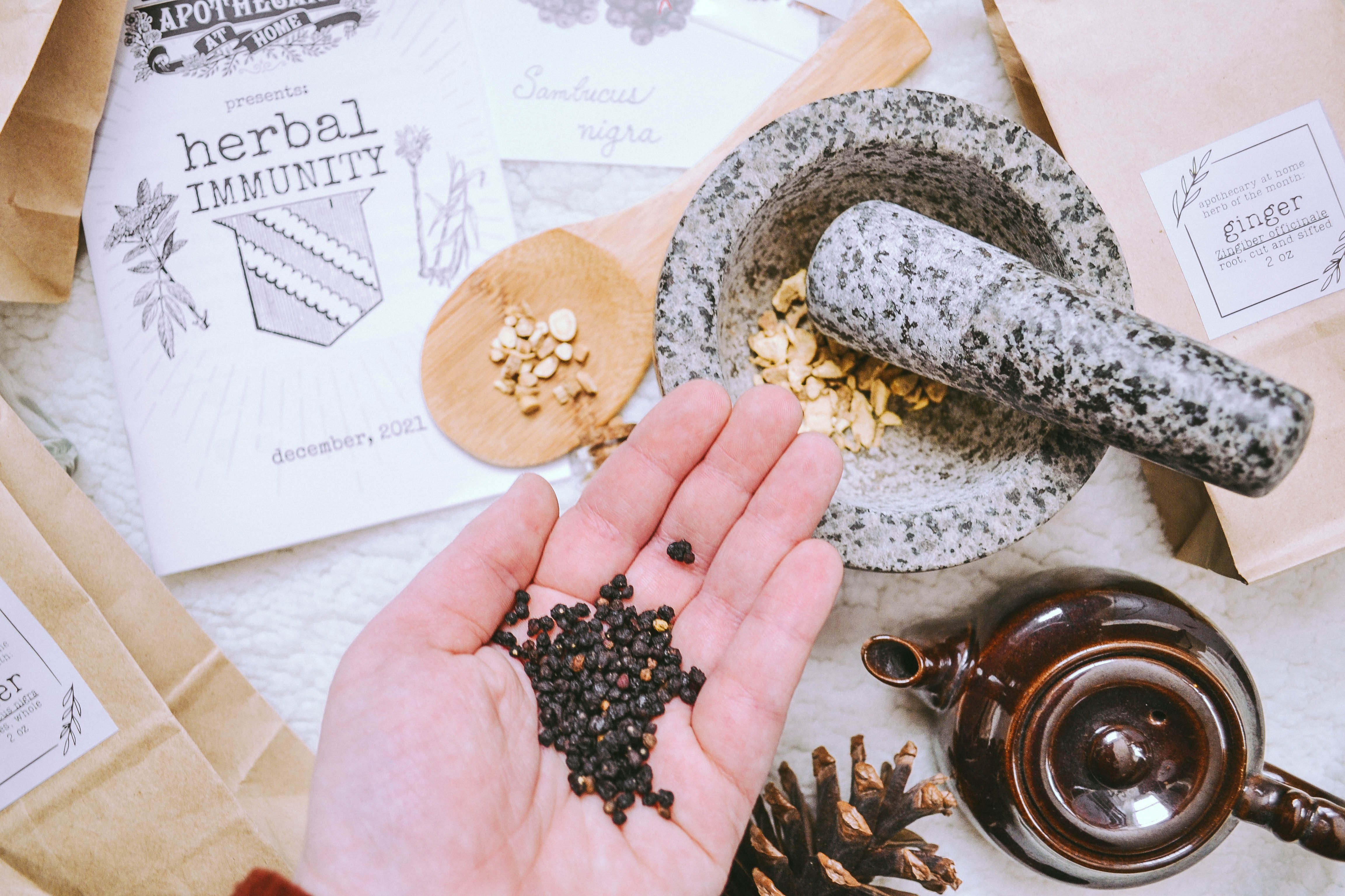 In December's box, we'll teach you the basics of herbal defense against common infections. Tackle sneezing, wheezing and tummy bugs with our favorite home-remedies for the winter blues.